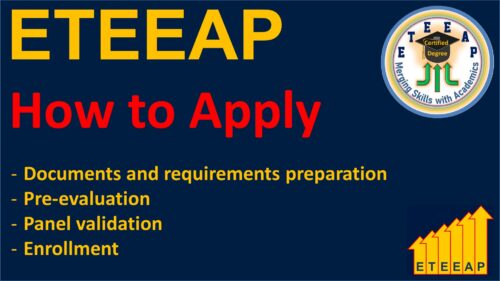 Paano mag-enroll sa ETEEAP? Ang page na ito ay naglalaman ng mga mahahalagang impormasyon tungkol sa ETEEAP kasama na dito ang mga kinakailangan o requirements, kung paano mag-apply o mag-enroll hanggang sa mag-umpisa ang actual na pag-aaral ng isang estudyante. Ang ilan … Continue reading Paano Mag-apply
