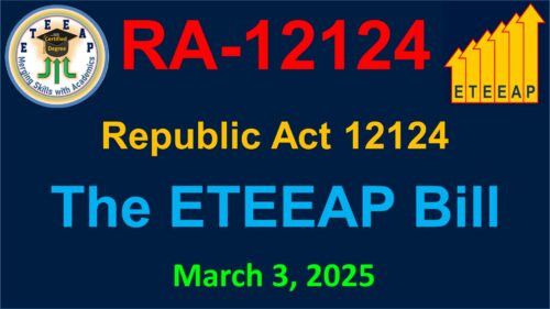 On March 3, 2025, President Ferdinand Marcos, Jr. signed the RA-12124 known as the ETEEAP Bill. This is to establish the May 10, 1996 Executive Order 330 (EO330) of former President Fidel V. Ramos into a law or Republic Act. This is … Continue reading Republic Act 12124
